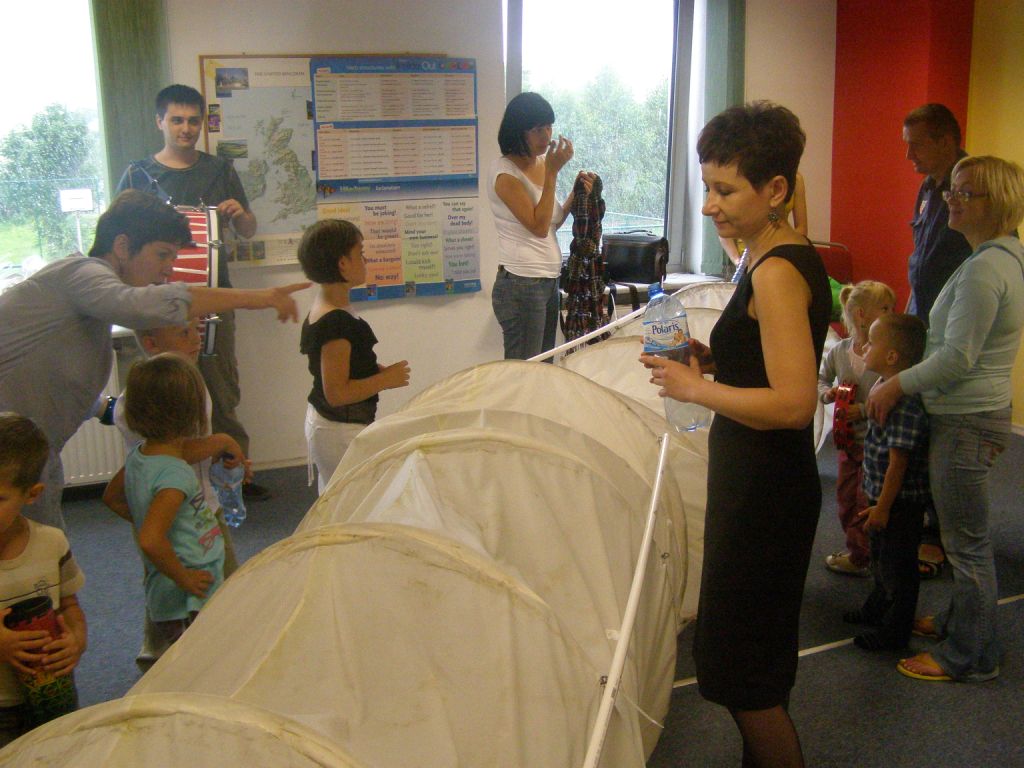 Następnego dnia od godziny 10:00 odbywały się w MOK warsztaty teatralne i cyrkowe. Dzieci wspólnie z rodzicami uczyły się żonglować, chodzić na szczudłach, malować, wycinać. Animatorzy prowadzili przeróżne gry i zabawy edukacyjne. Warsztaty okazały się dla rodziców wspaniałym sposobem twórczego spędzania czasu ze swoimi dziećmi.