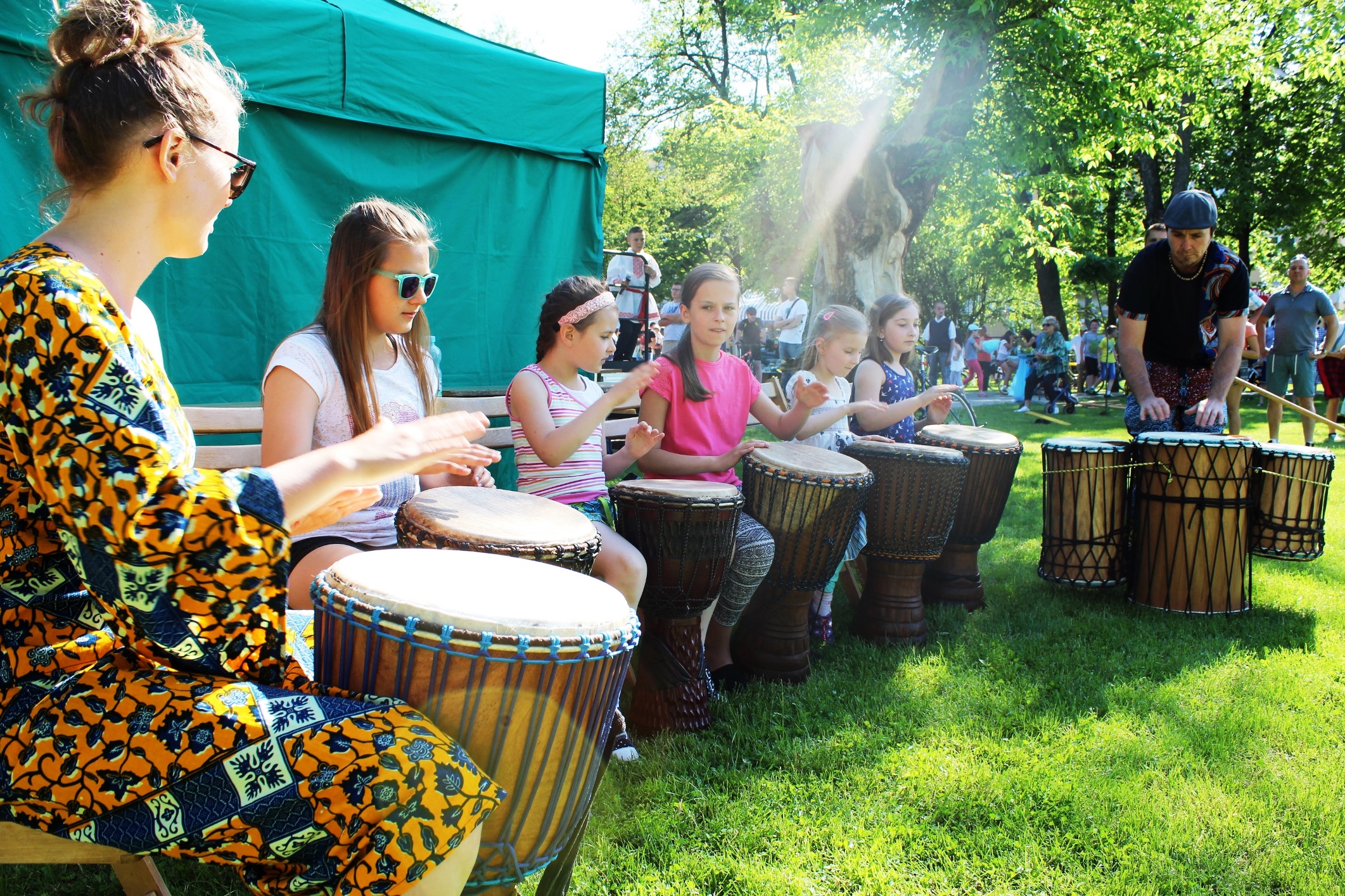 Kolejnym występem był pokaz afrykańskiej muzyki na oryginalnych bębnach. Do dwójki muzyków dołączyły dzieci, które dzień wcześniej w MOK wzięły udział w warsztatach bębniarskich. Z pewnością spotkamy się z muzykami za rok.